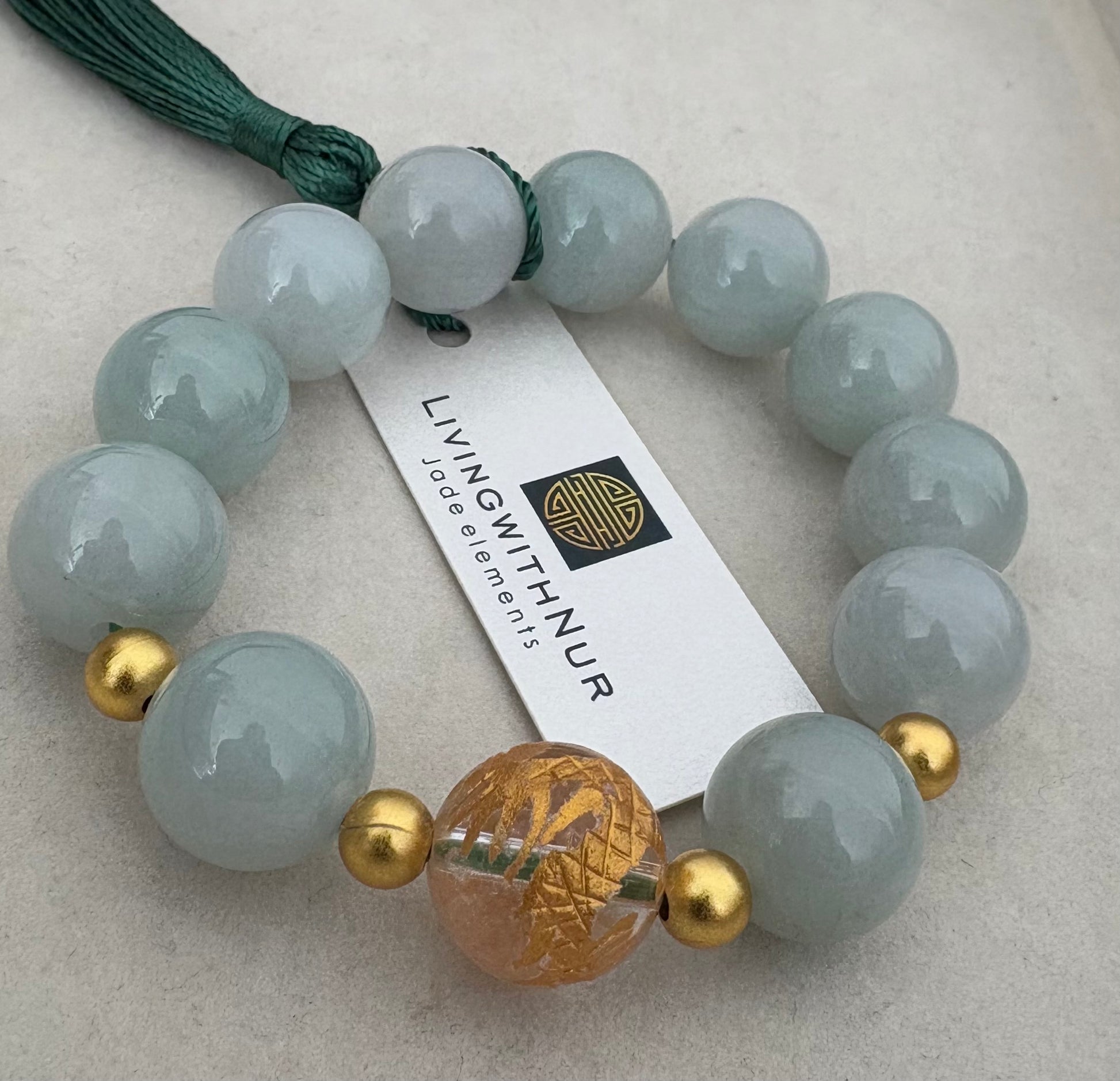 Big Bead Jade bracelet 15mm & Dragon carved Quartz